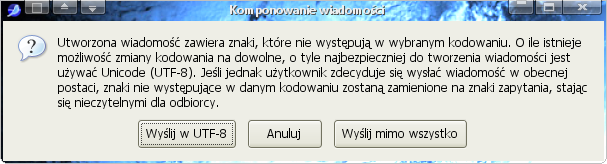 Teraz, przy wysyłce, gdy zawrzemy w wiadomości jakieś znaki, których Seamonkey nie będzie w stanie zakodować w ISO-8859-2, to on sam zastosuje UTF-8.